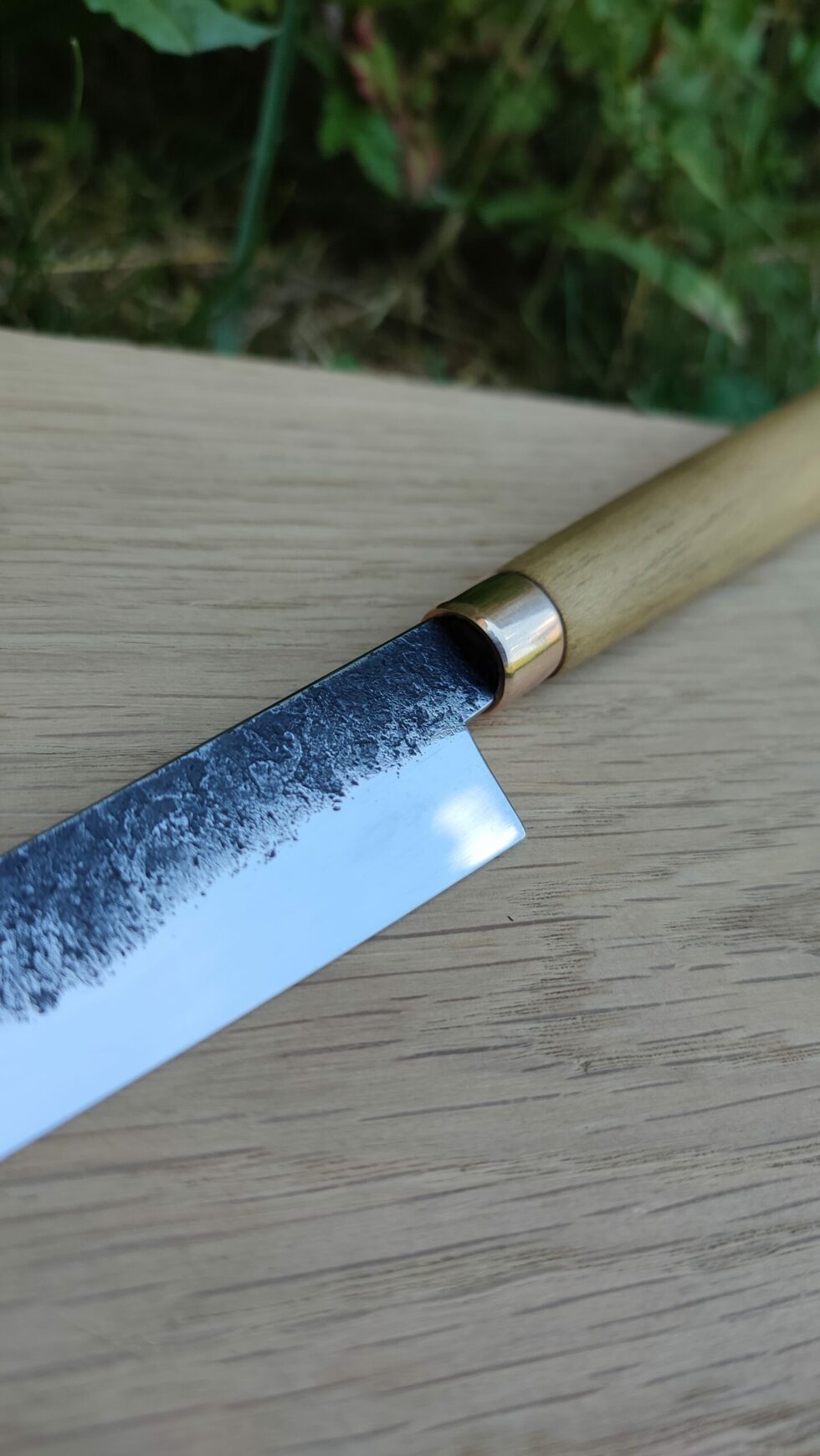 Manche en acacia avec bague en bronze.